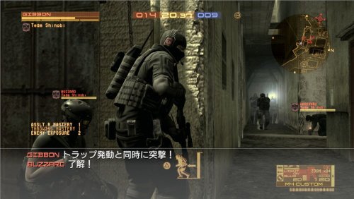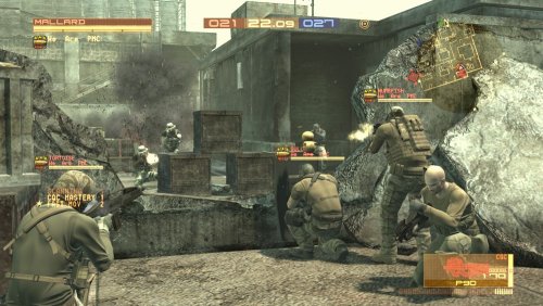 これで戦場? 初めてPS3でオンライン対戦を体験しましたが、無駄に高低差の多いマップばかりのかくれんぼサバイバルゲームでした。シングルモードでほぼ使わなかった常時右スティックでの360゜監視(カメラワーク最悪。壁越し真下等に発砲できない)とほぼ全ての武器でのHS一撃死。耳障りなプリセット無線。カスカスな銃撃音。メタルギアの操作システムが逆に足を引っ張ってるのか私には向かなかったようで、この後に買ったBattlefield Bad Company(FPS)を未だにオンラインで遊んでます。個人主観ですが戦場の雰囲気を感じたいならFPS。そこまでこだわらない人ならTPSといった所でしょうか?